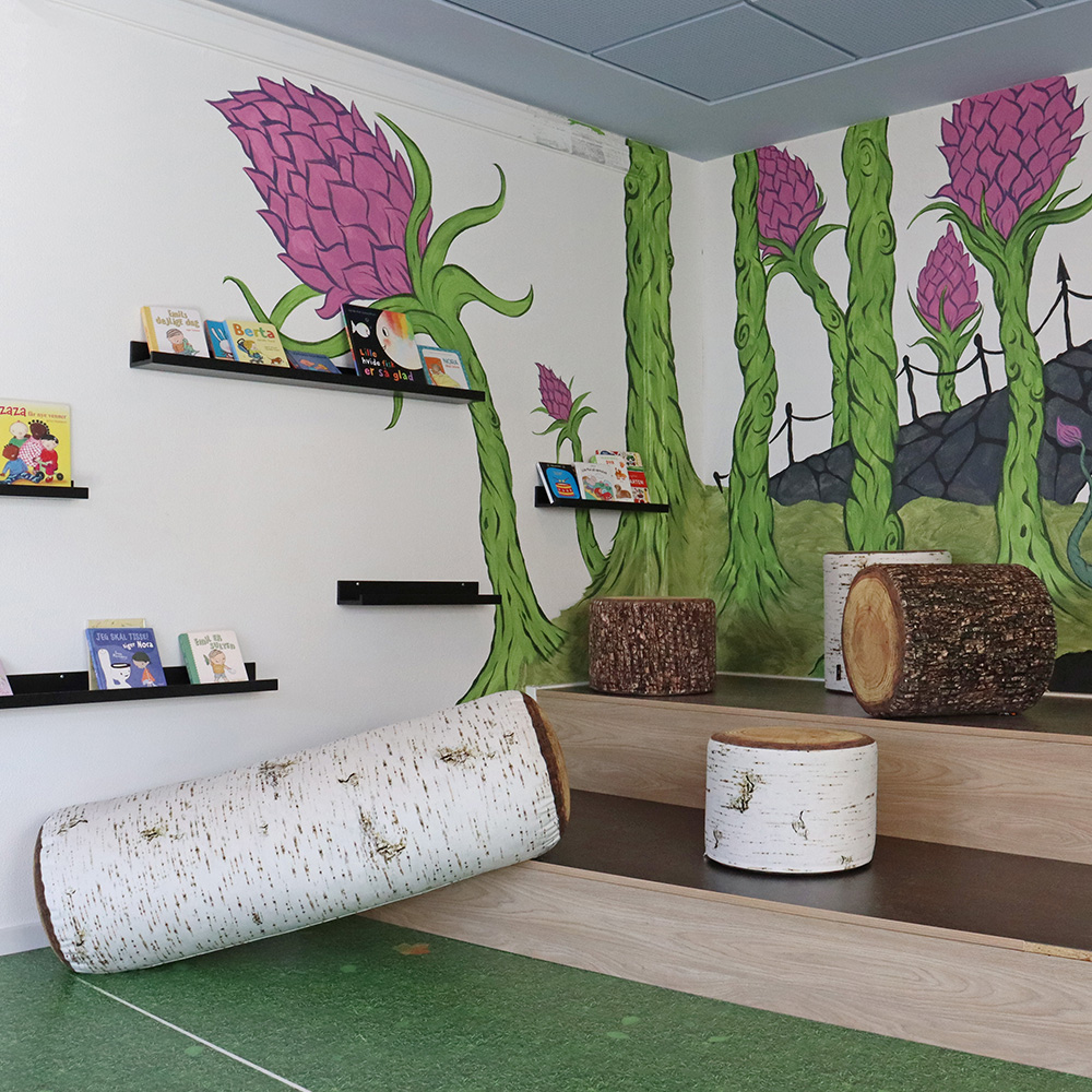 Det æstetisk tiltalende og samtidig nyttige produkt med det karakteristiske udseende bringer naturen ind i biblioteket til stor glæde for alle besøgende.