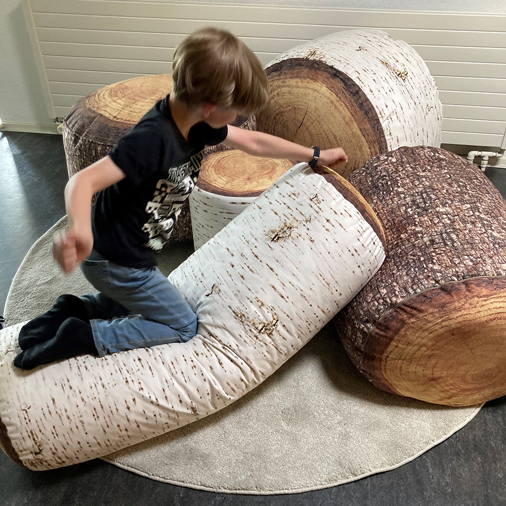 Den iøjnefaldende Rollo træstammepuf vil overraske dig med en uventet blødhed. Den er krammevenlig og kan benyttes på gulvet som en liggepuf eller bare en kæmpepude.