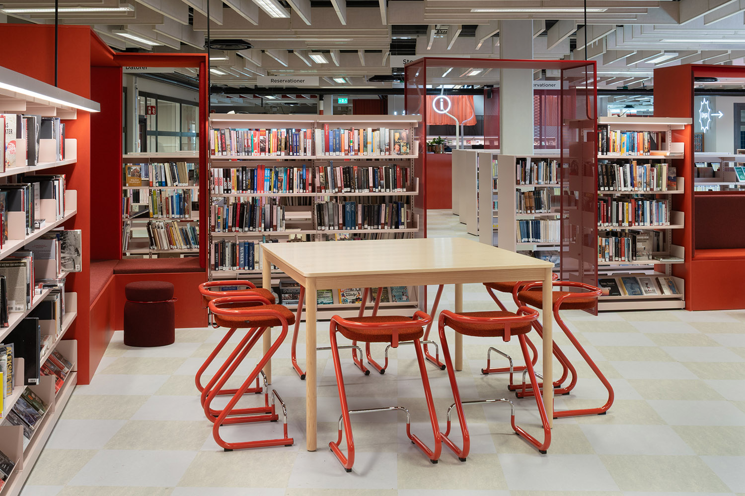 S70-serien fås i forskellige farver og materialer, hvilket gør det let at tilpasse den til biblioteksindretningen. Bemærk at vi forhandler hele sortimentet fra Lammhults.