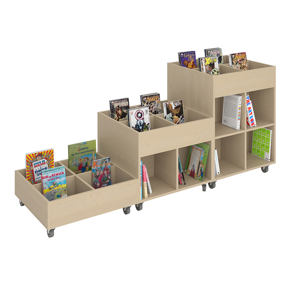 Sara er en serie af krybber i både kvadratisk og rund design og i 3 forskellige højder til fleksibel biblioteksindretning.