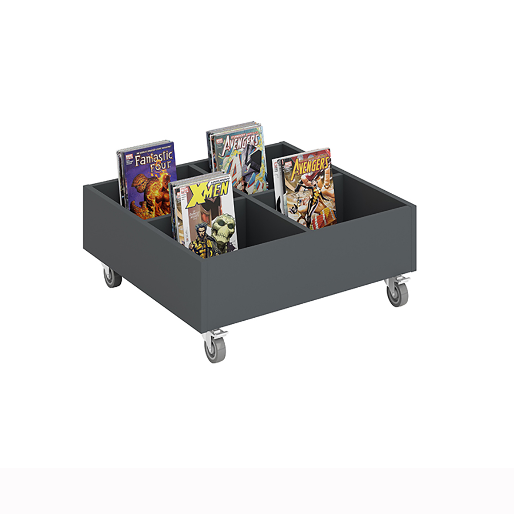 Sara er en serie af krybber i både kvadratisk og rund design og i 3 forskellige højder til fleksibel biblioteksindretning.