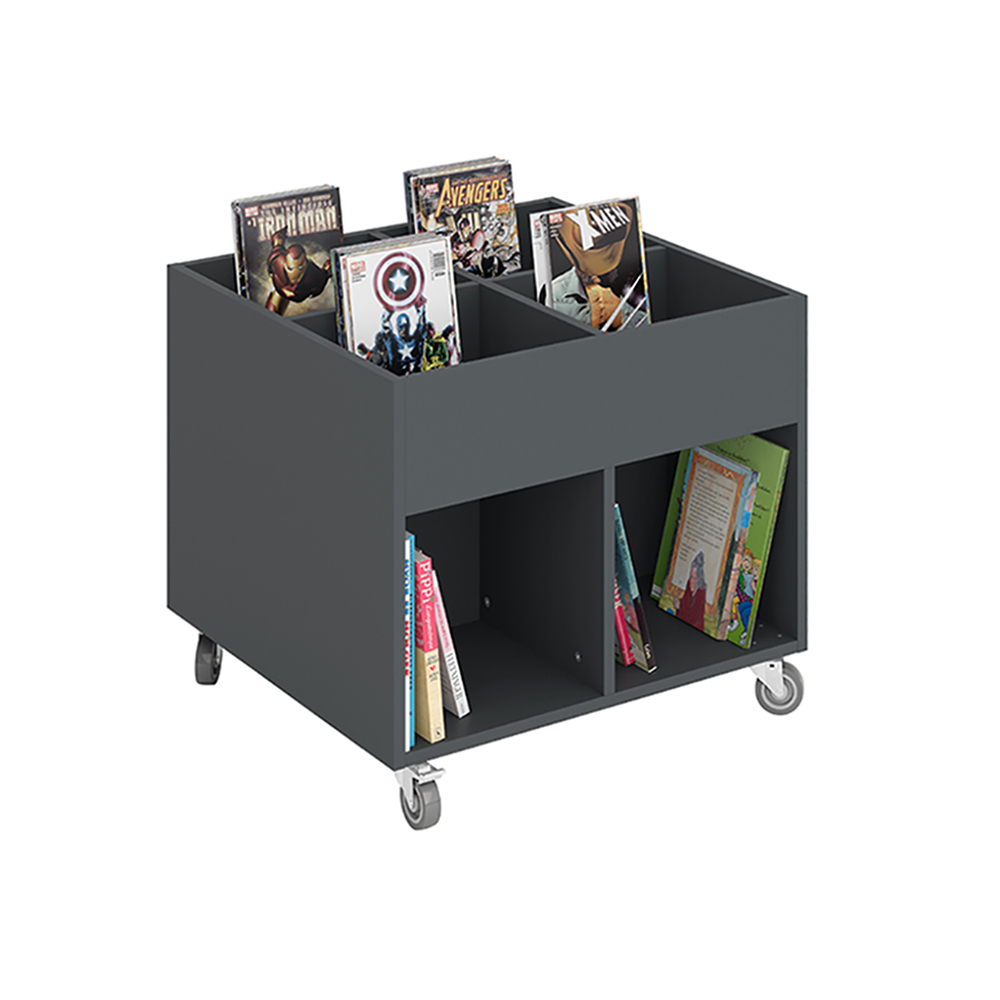 Sara Midi er en billedbogskrybbe med fire eksponeringsrum øverst og fire opbevaringsrum nederst. Ideel til børn.
