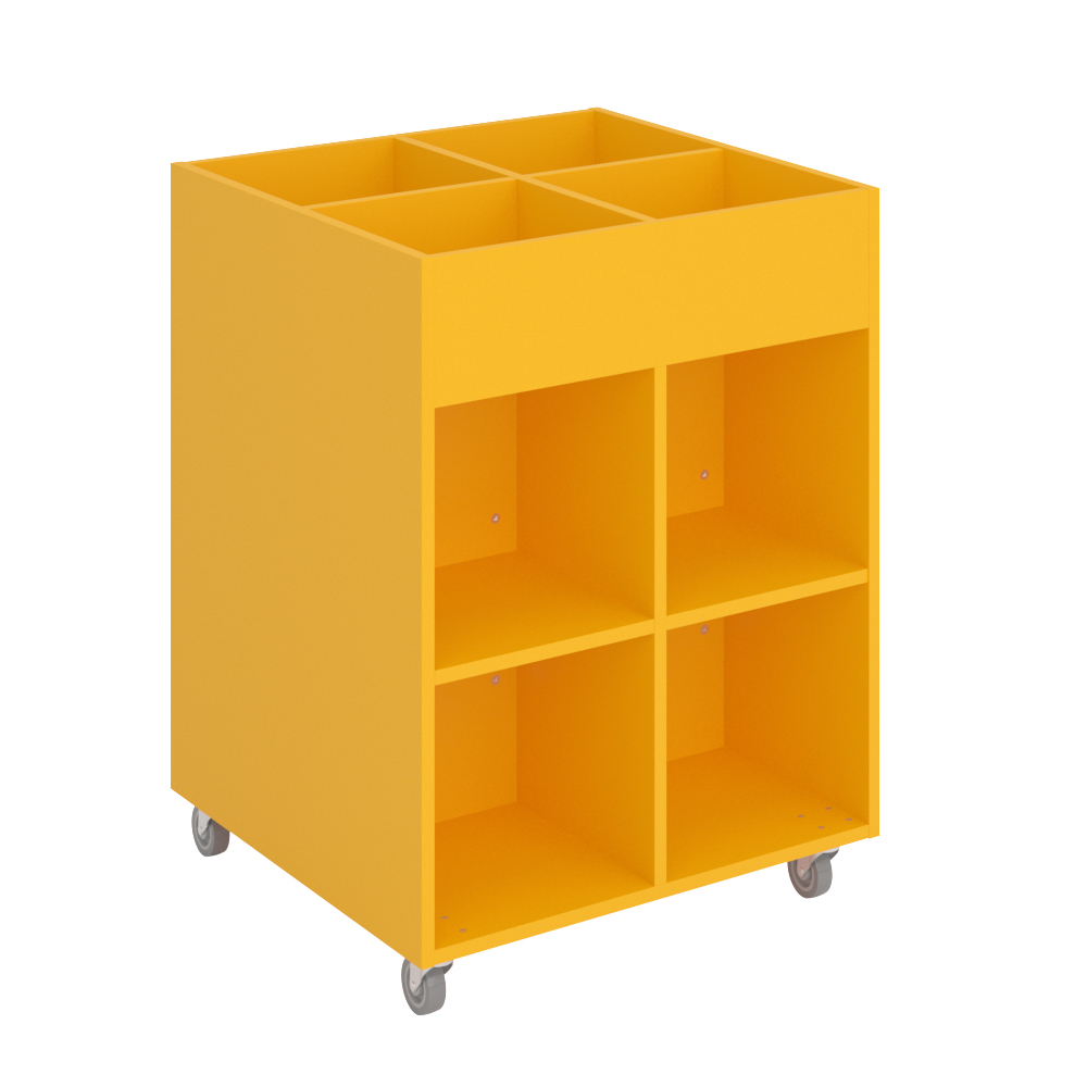 Sara Midi er en billedbogskrybbe med fire eksponeringsrum øverst og fire opbevaringsrum nederst. Ideel til børn.