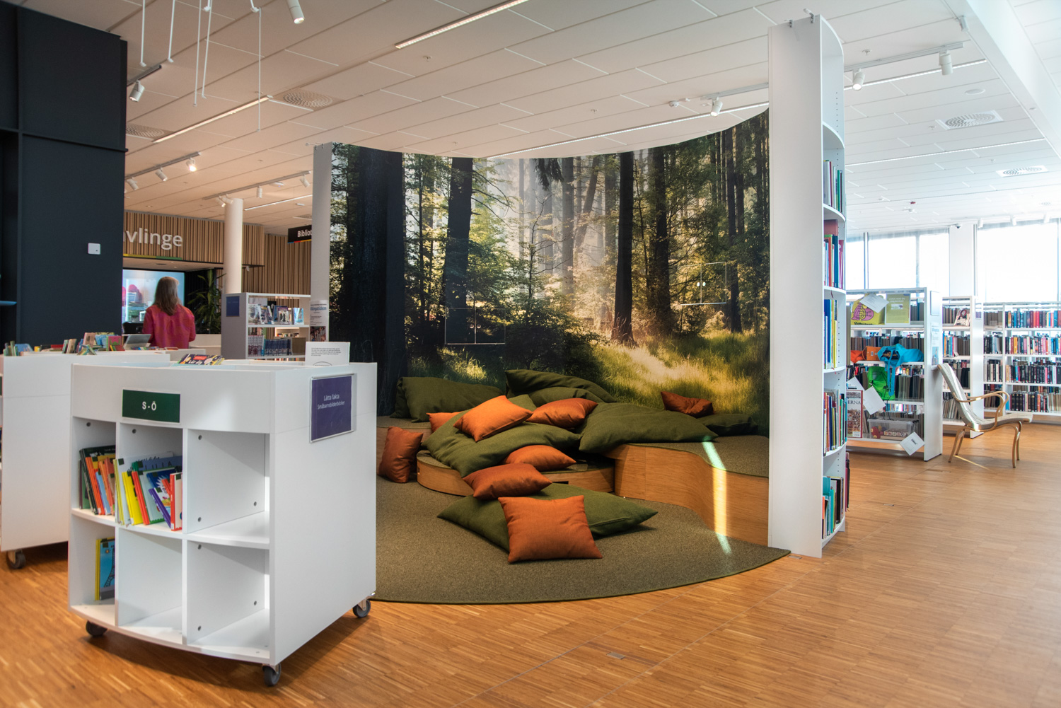 Sara er en funktionel og moderne krybbe, der præsenterer og opbevarer alle typer af bøger og media på en simpel og visuel måde. Afhængig af højde kan krybben bruges af både børn og voksne, og passer ind i alle områder i biblioteket.