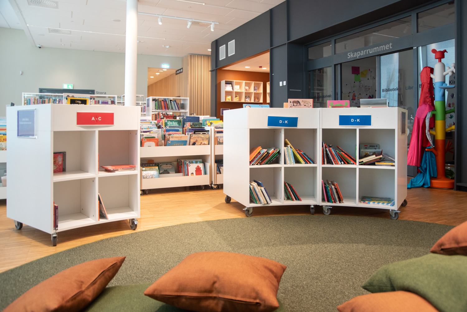 Sara er en serie af krybber i både kvadratisk og rund design og i 3 forskellige højder til fleksibel biblioteksindretning.