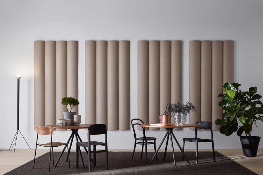 Scala vægpanel og gulvskærm er den ultimative løsning til at skabe fleksible rum i biblioteket. Formen er inspireret af naturen og bølger og giver en større absorberende overflade, end hvis produkterne var flade.
