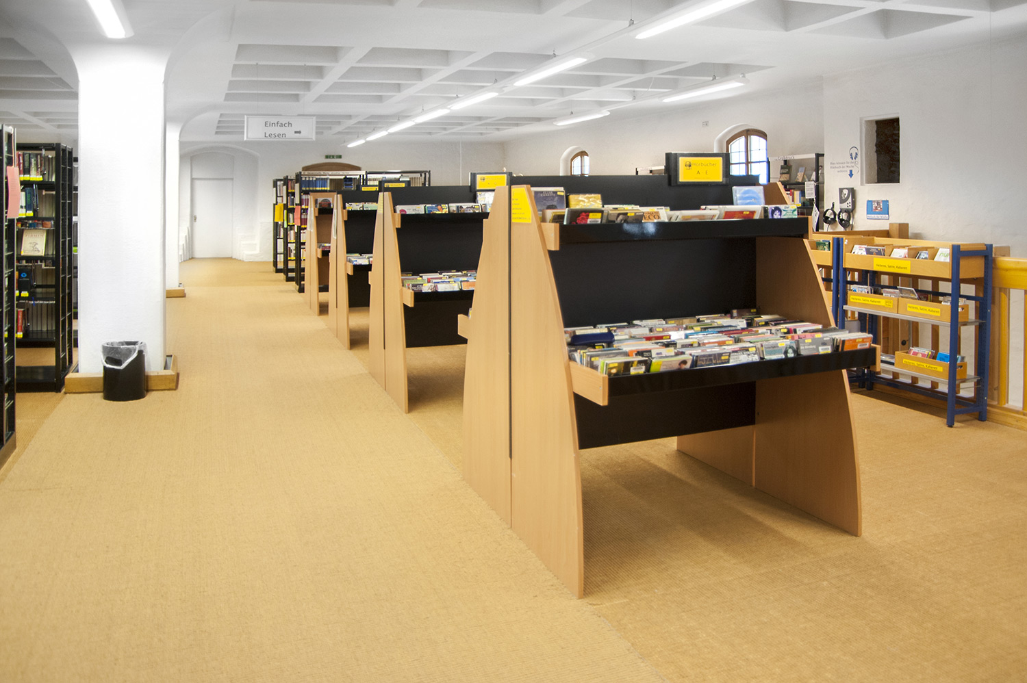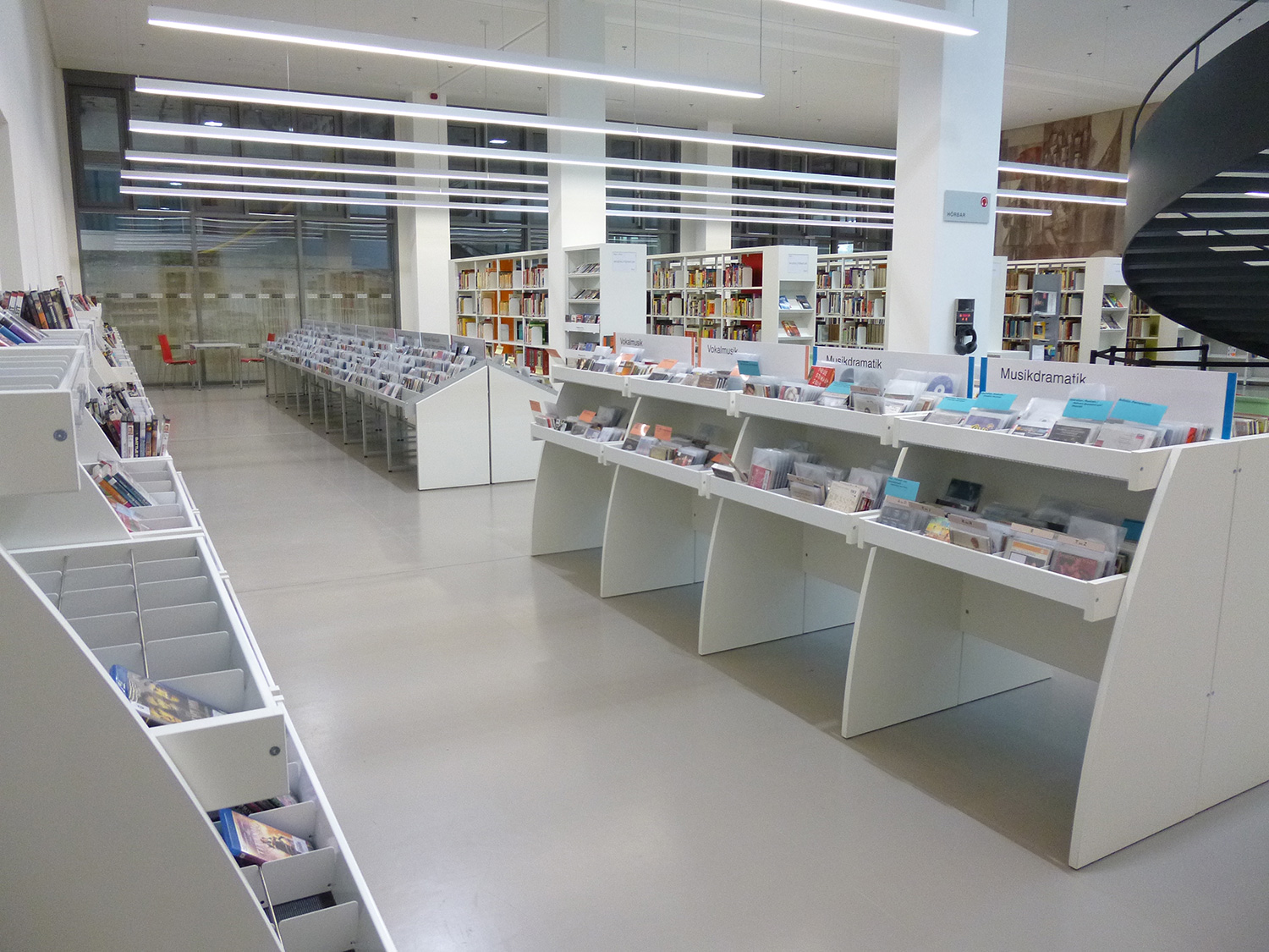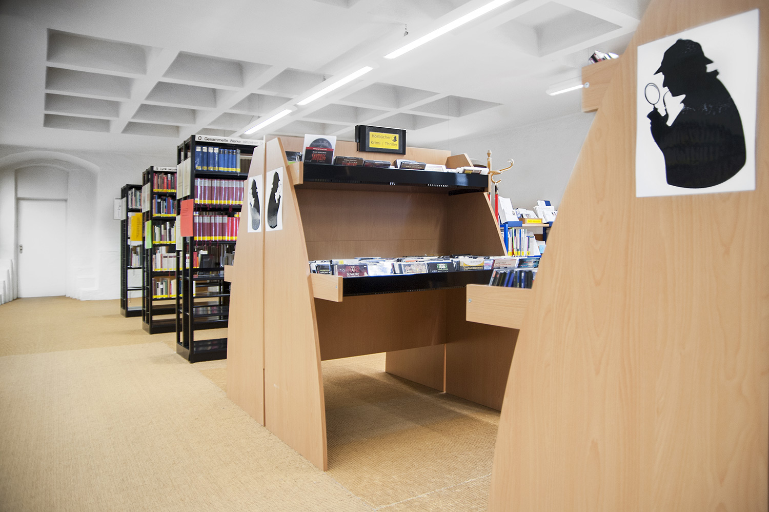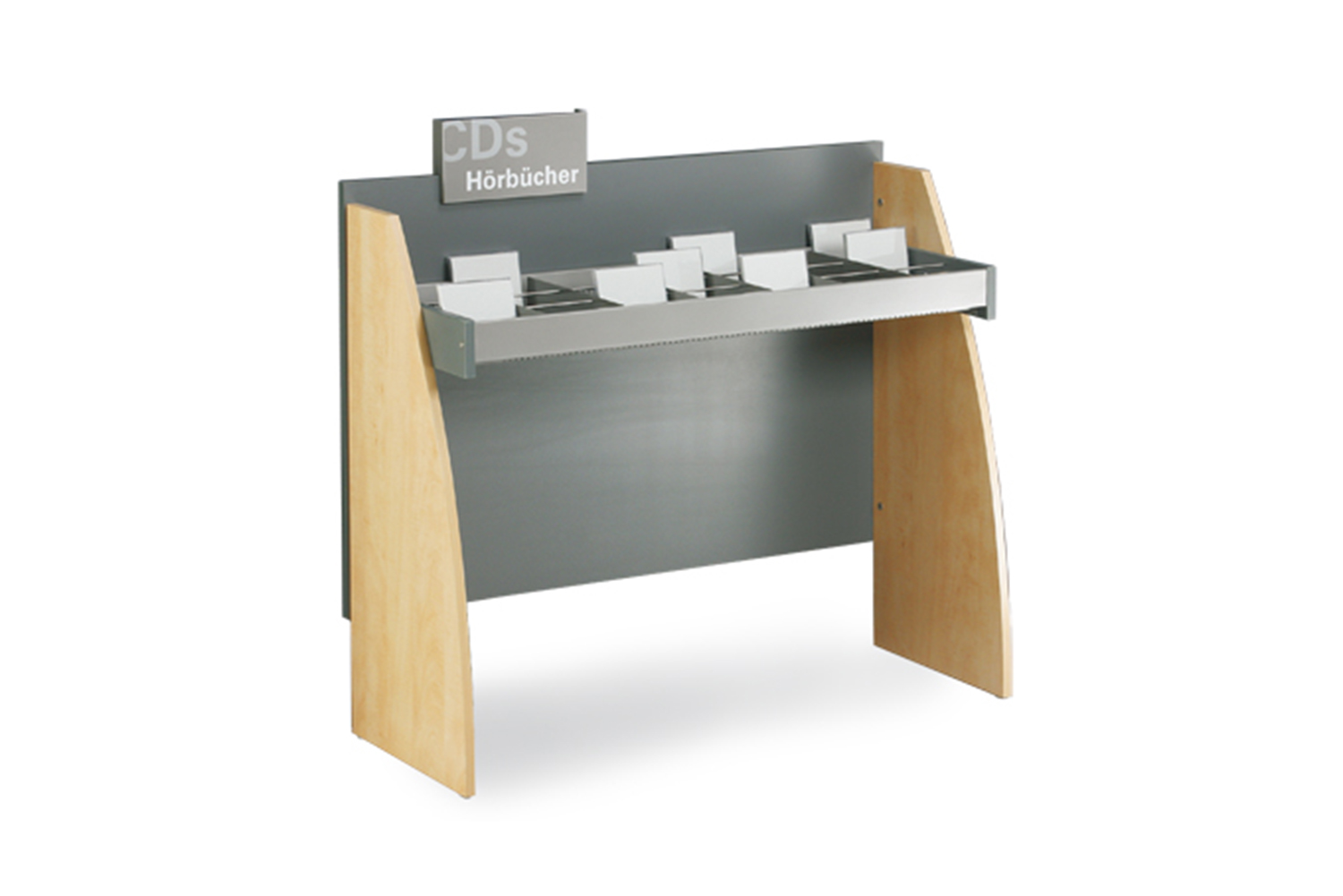 Sinus krybbens afrundede design gør den til et meget præsentabelt møbel i biblioteket. Der er fire forskellige modeller i serien: Den fås som enkeltsidet eller dobbeltsidet model samt med enten en eller to præsentationshylder.