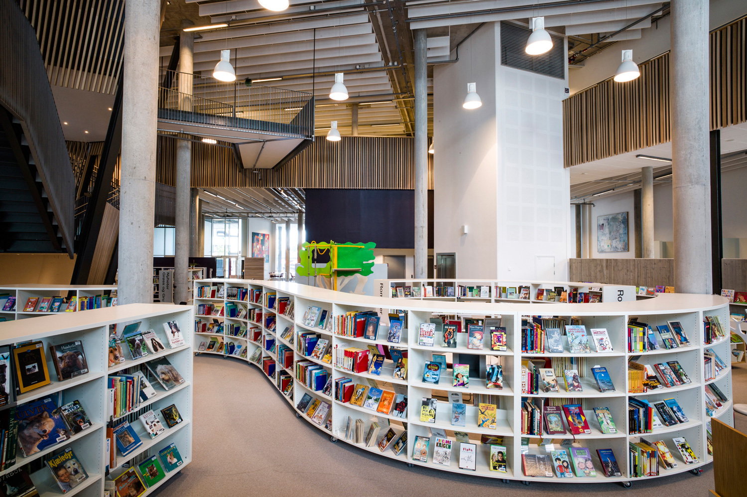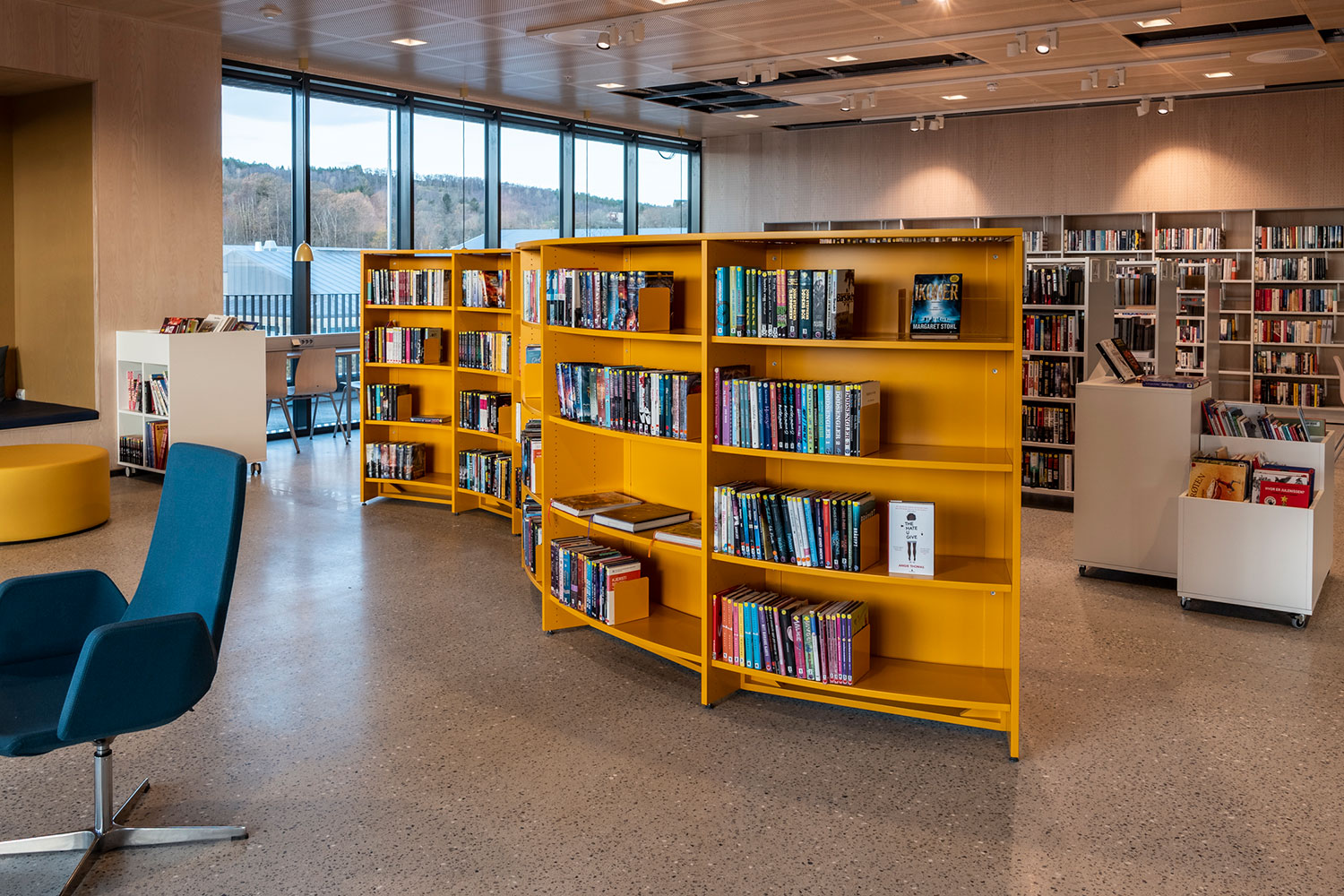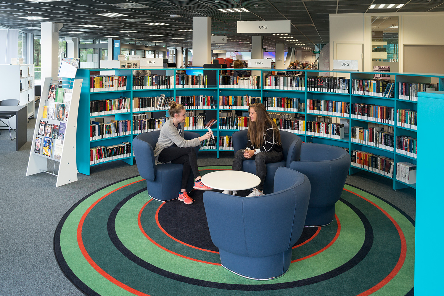 Slimline/Frontline rund reol åbner op for en helt ny verden at udstille og opbevare bøger på. Skab små læsezoner eller individuelle zoner ved at lave næsten lukkede cirkler, hvor biblioteksbrugerne kan trække sig tilbage eller skab åbne bølger, der løber igennem biblioteket.