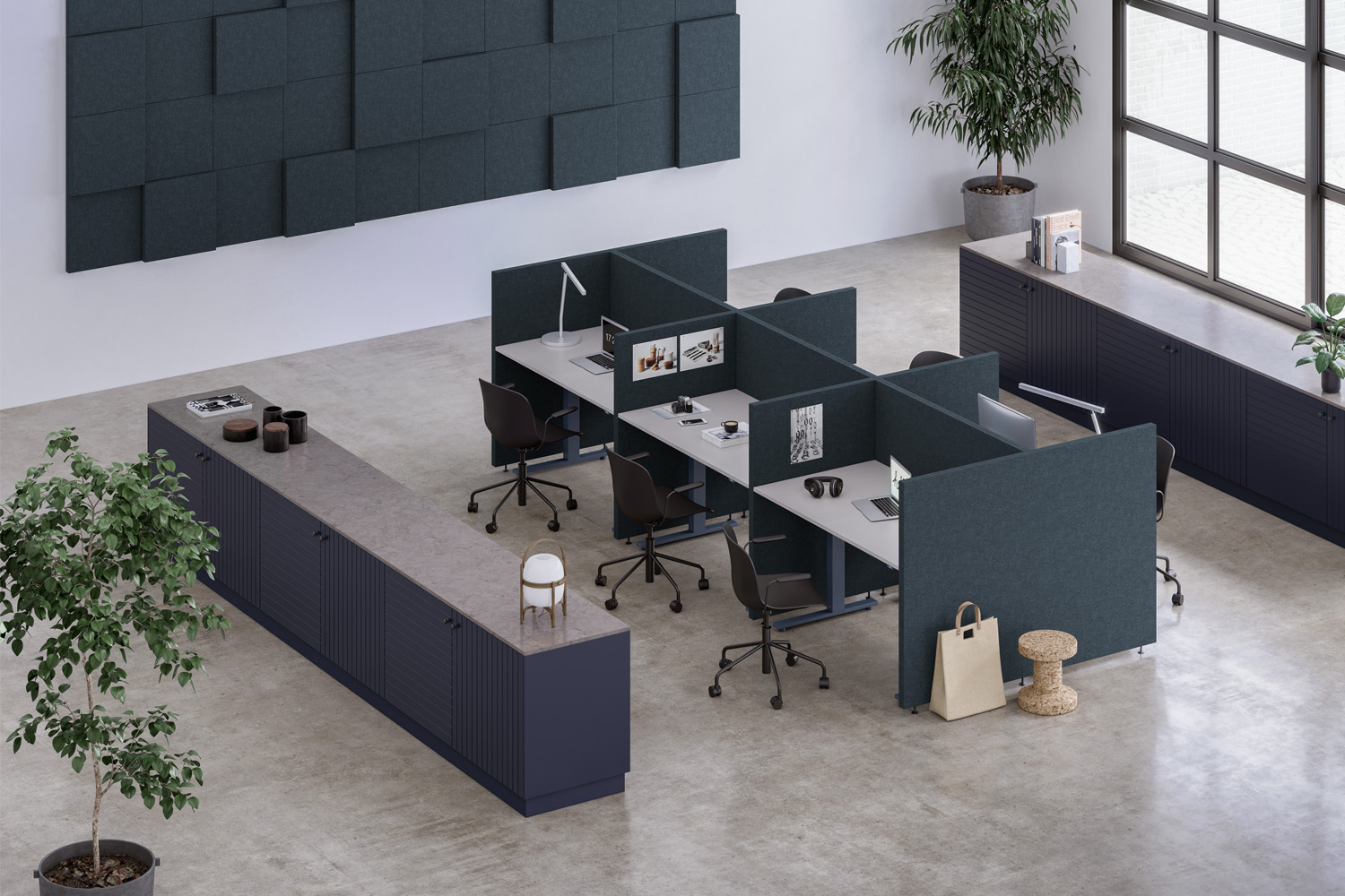 Skærmen er et lydabsorberende møbel, der er med til at rumopdele og forbedre akustikken i biblioteket. Soneo gulvskærm kommer i et tidløst design og mange forskellige størrelser.
