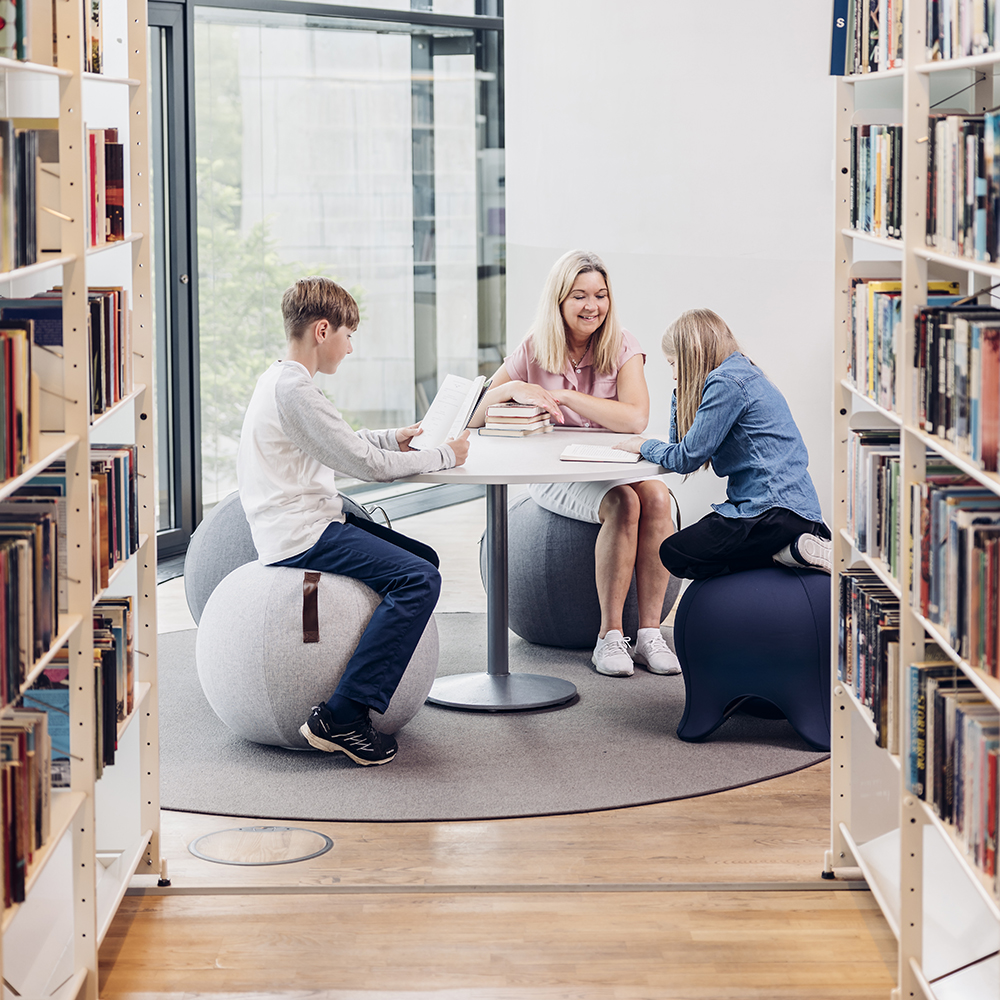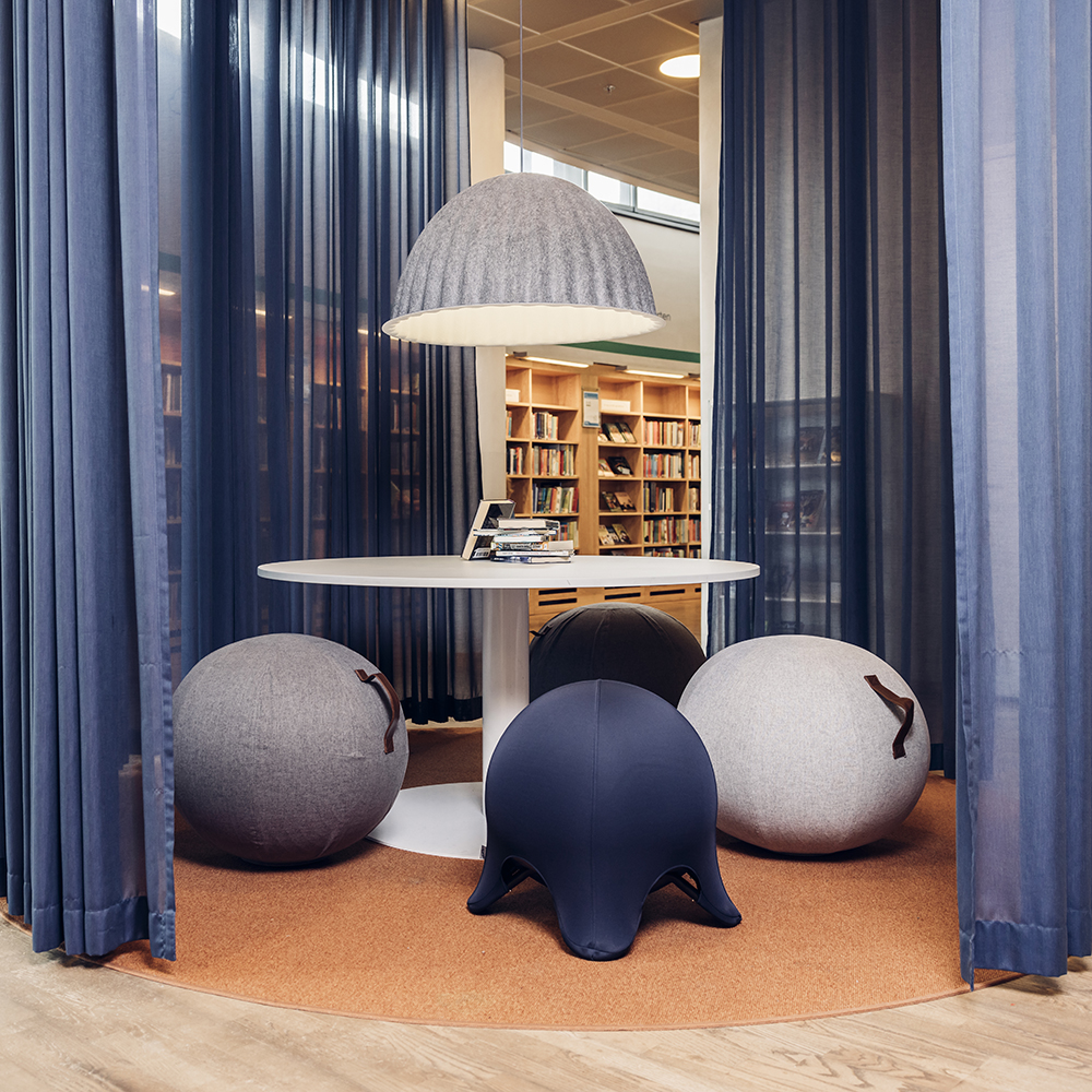 Et perfekt supplement eller direkte alternativ til den normale stol og samtidig et lille skulpturelt møbel, som passer ind overalt i biblioteksindretningen f.eks. i studiemiljøer og siddegrupper men også til den lille pause imellem bogreolerne.