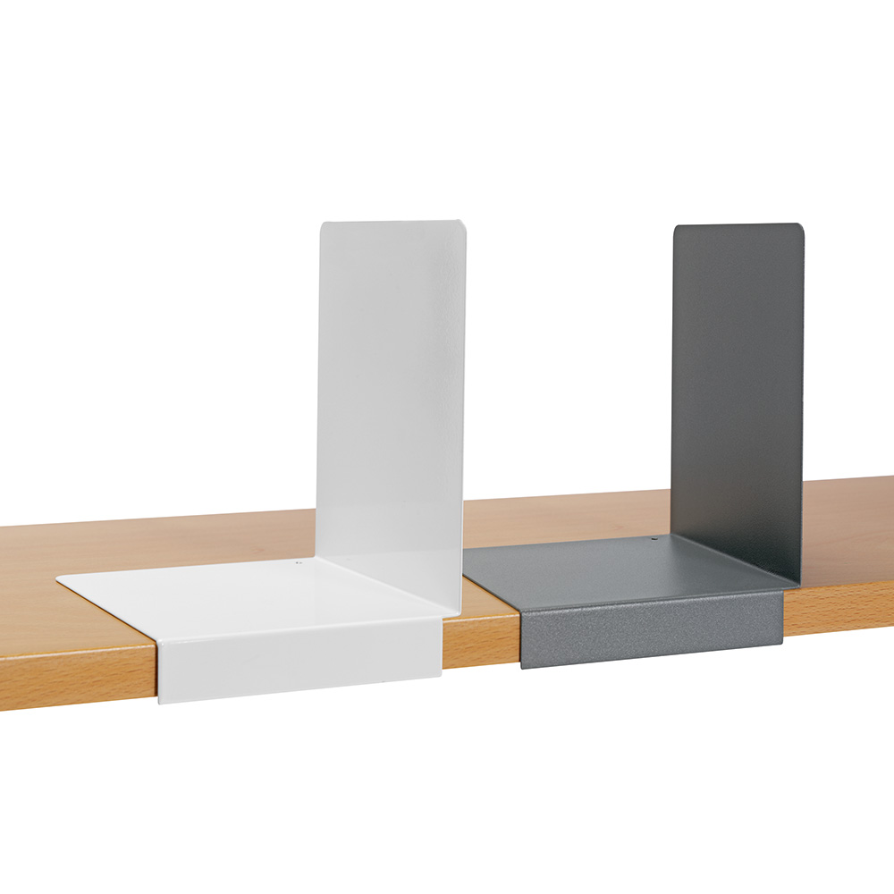 Kanten, som holder bogstøtten på plads på hylden, kan med fordel anvendes til skiltning.