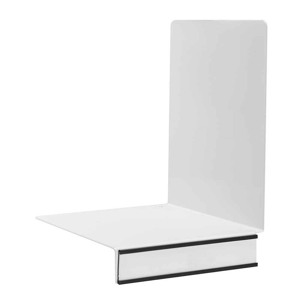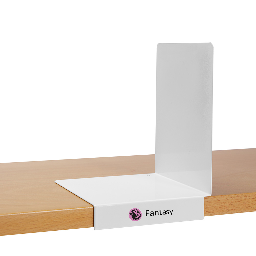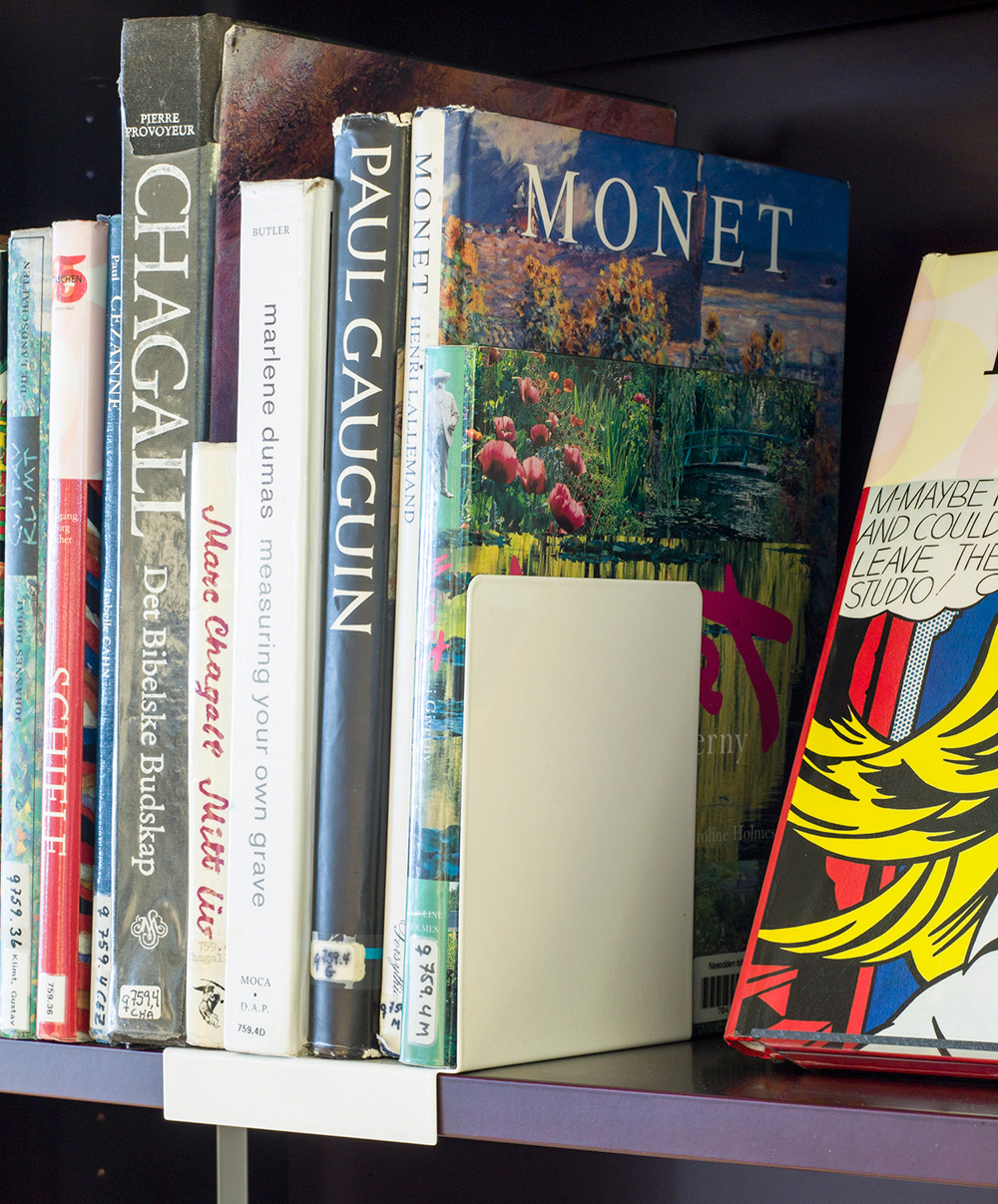 Kanten, som holder bogstøtten på plads på hylden, kan med fordel anvendes til skiltning.