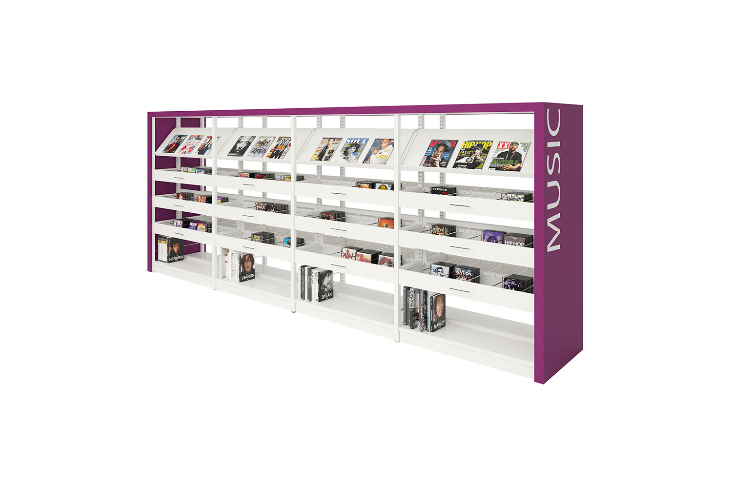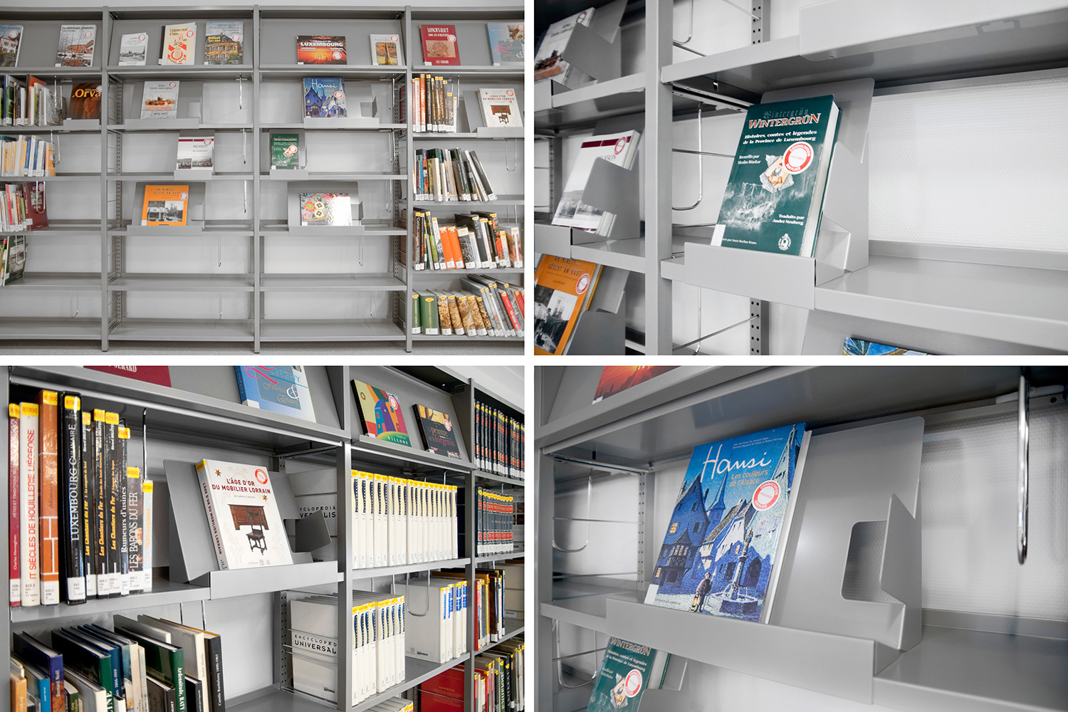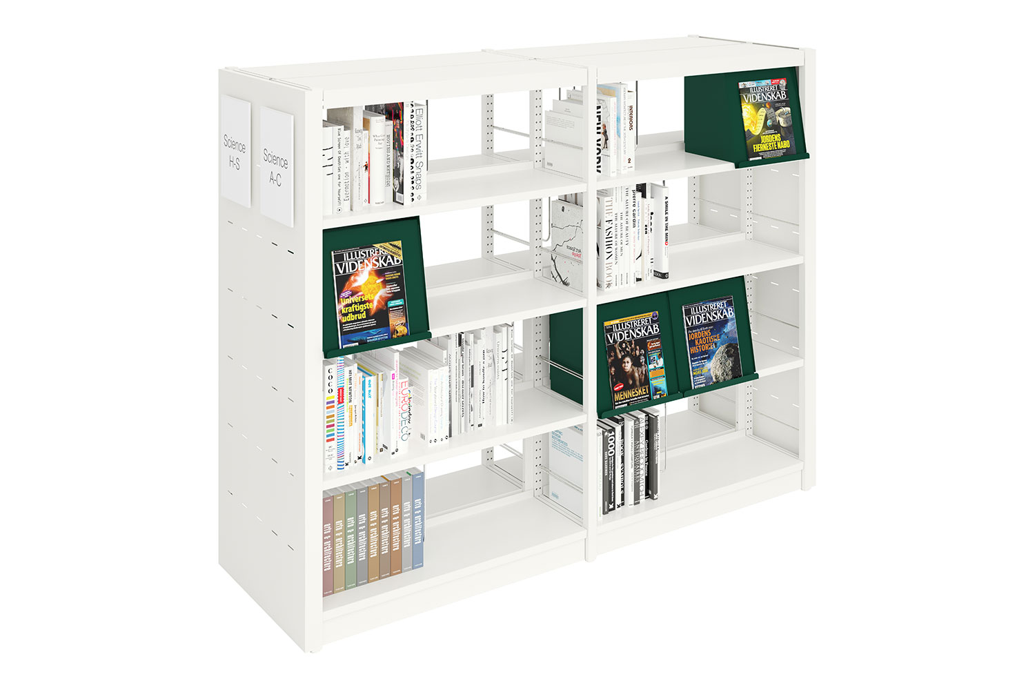 Stålreolsystemet danner basis for at bygge dit eget unikke system, der passer til kravene i netop dit biblioteks design og funktionalitet. Tilføj en bred vifte af funktionelle elementer til dit stålreolsystem, som f.eks. :
