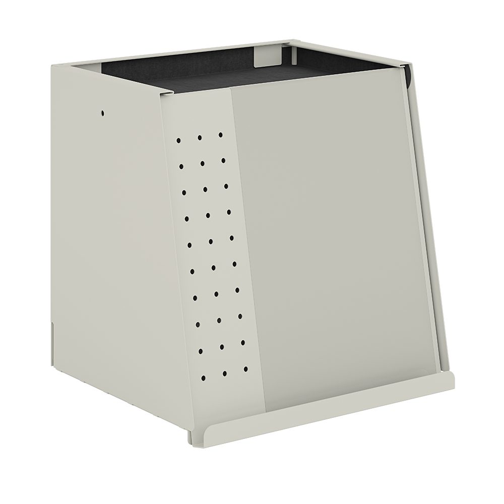 Tidsskriftsboks til hylder med en dybde på op til 250 mm. Viser tidsskrifter med forsiden mod den besøgende i en letlæselig vinkel.