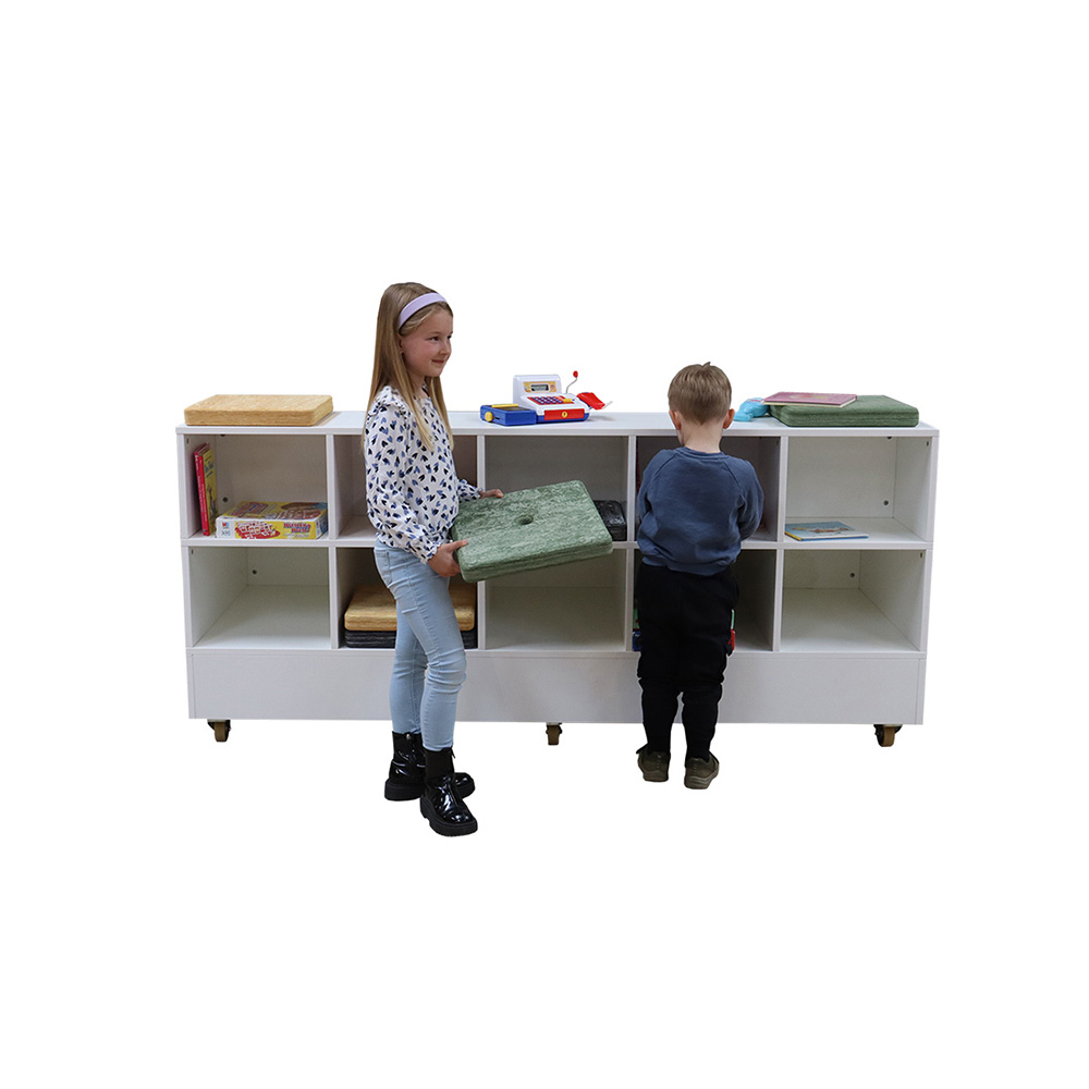 Med et minimalistisk og æstetisk tiltalende design tilbyder Verona flere enheder at stå tæt sammen eller helt op af en væg. På bagsiden er der god plads til opbevaring af f.eks. siddepuder, spil, bøger og legetøj, hvilket giver mulighed for kreativ udfoldelse. Det øverste podie kan også  med fordel vendes, så opbevaringsrummene vender fremad.