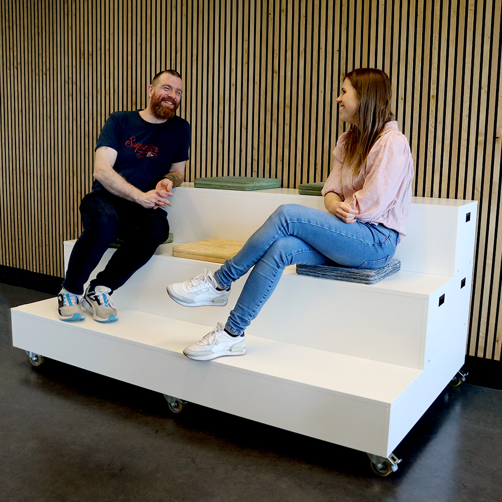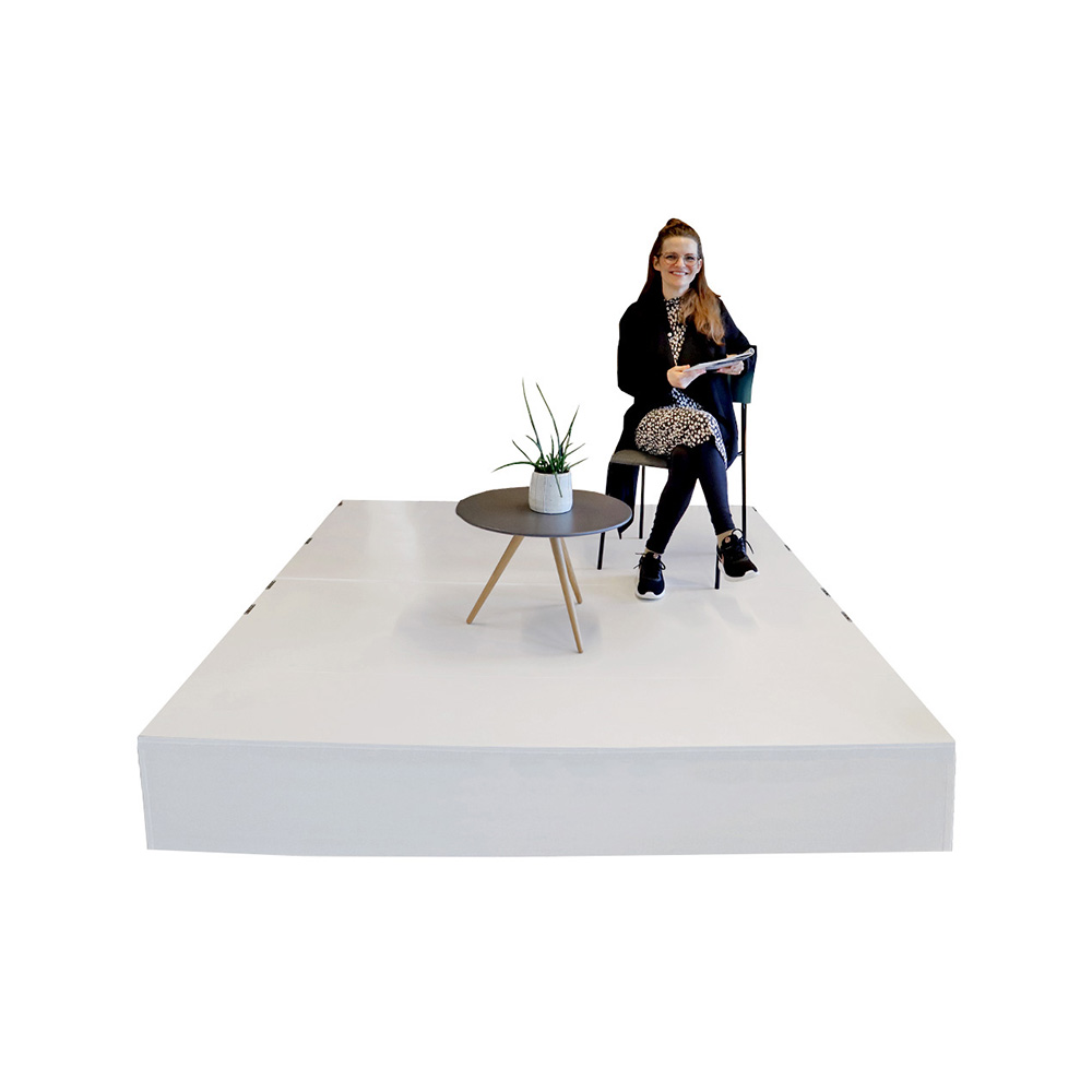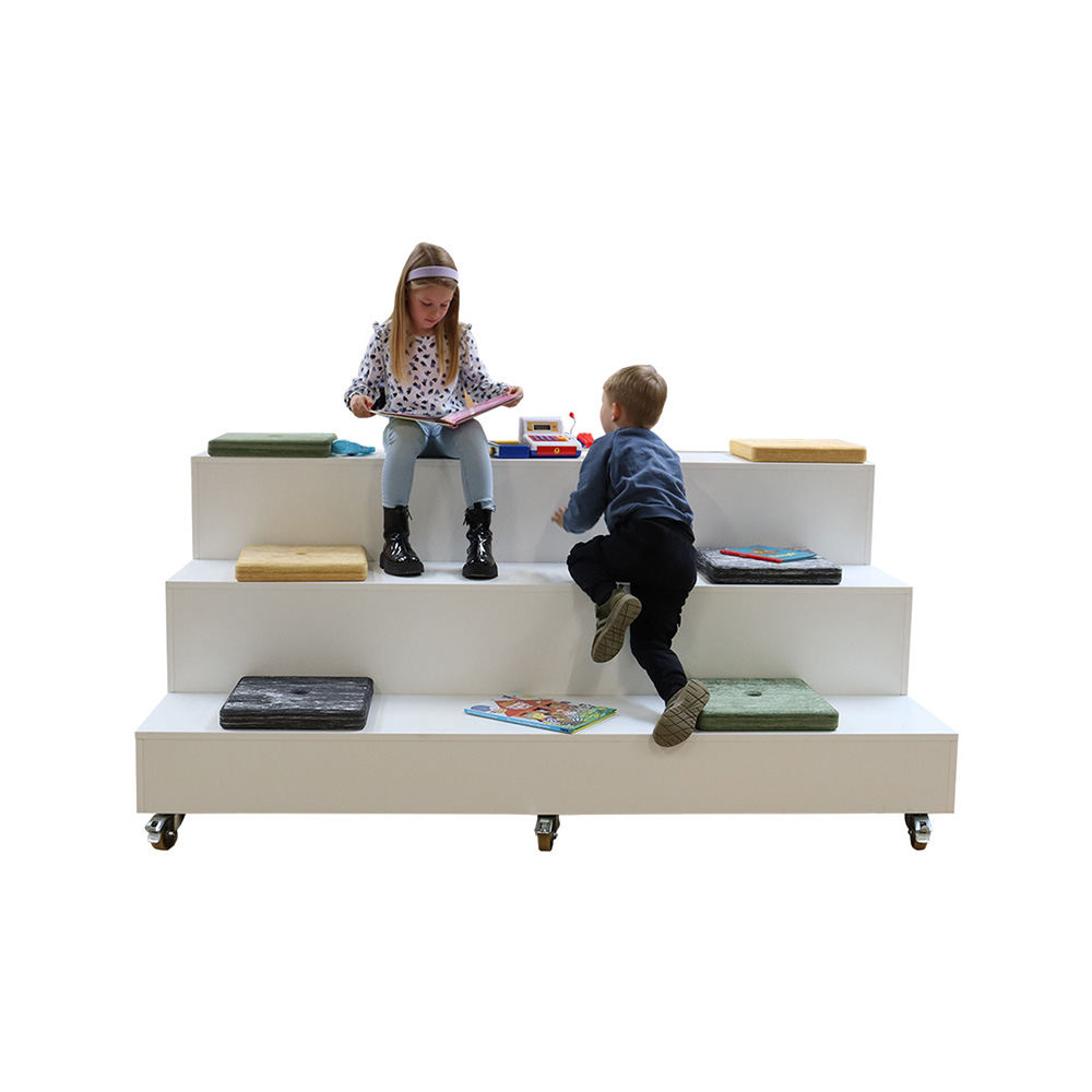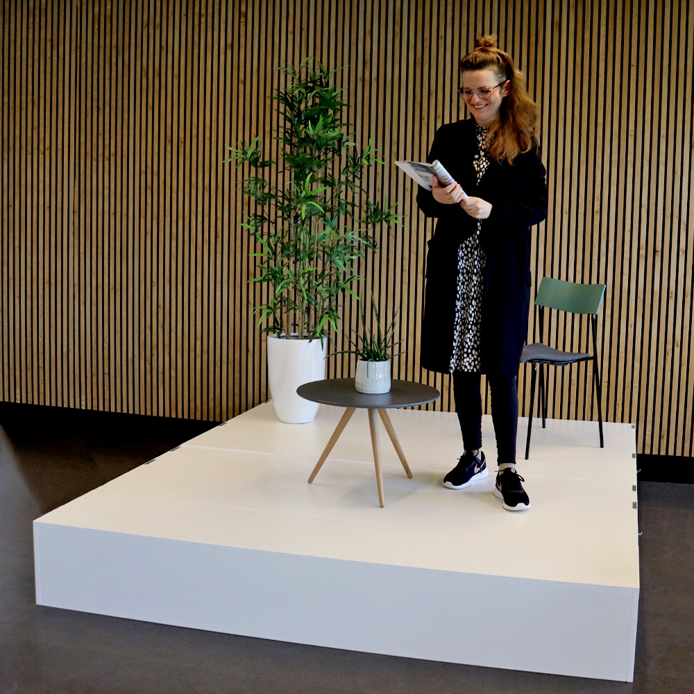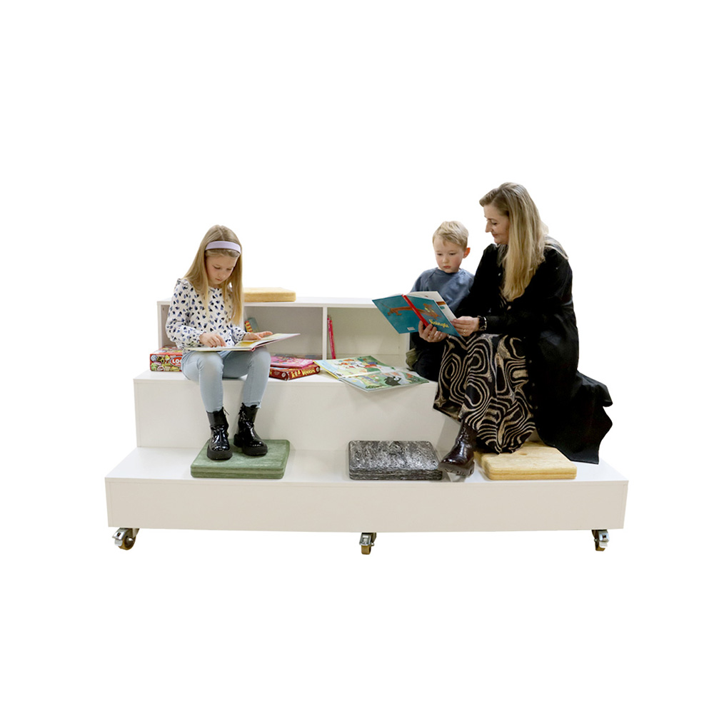 Siddepodiet og scenen har en stærk og robust konstruktion og kan anvendes i alle offentlige biblioteker samt kultur- og undervisningsinstitutioner til børn og voksne i alle aldre.